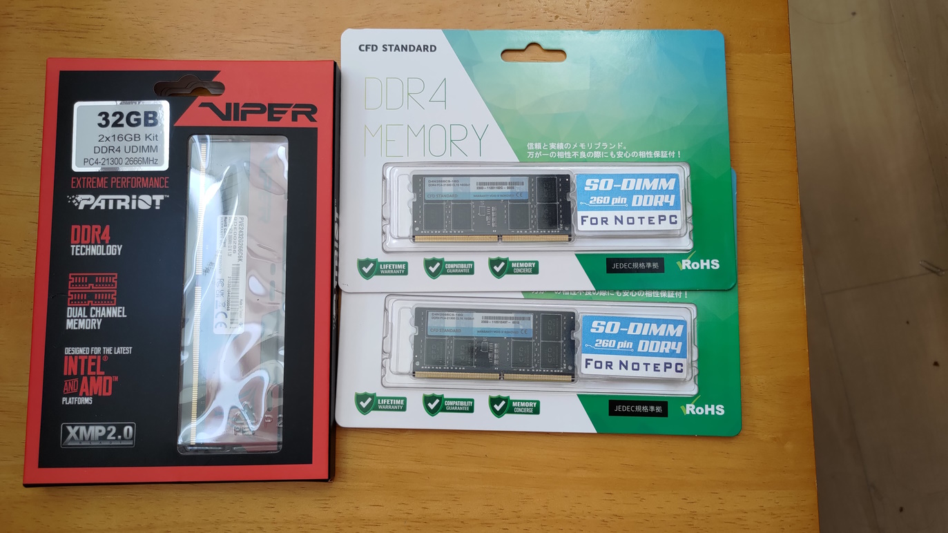 Inspironの方は購入時に8GB→16GBの拡張を真っ先にやったのだけど同じく増加させる。