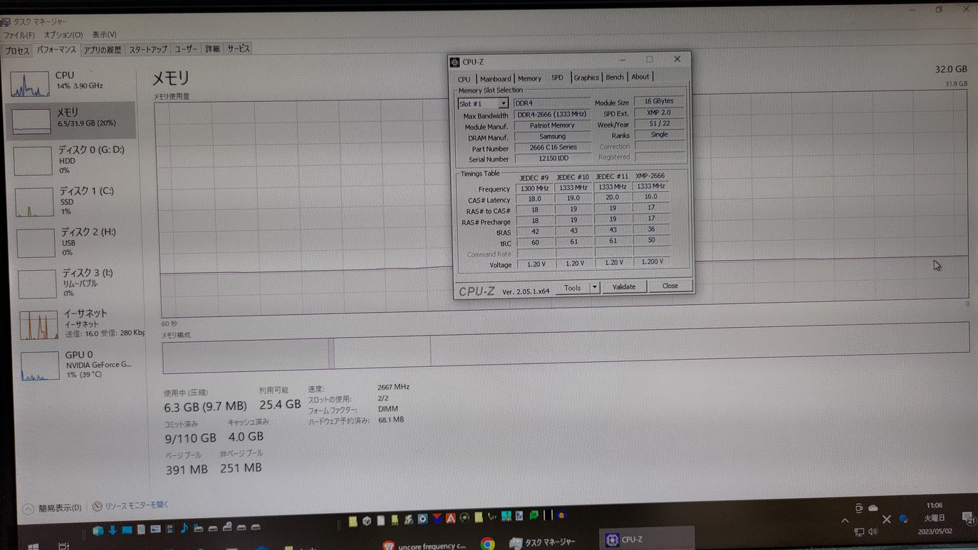 ちなみにノートの方もXMPに対応していたみたいでCPU-ZのSPDみたらXMPの記載があった。