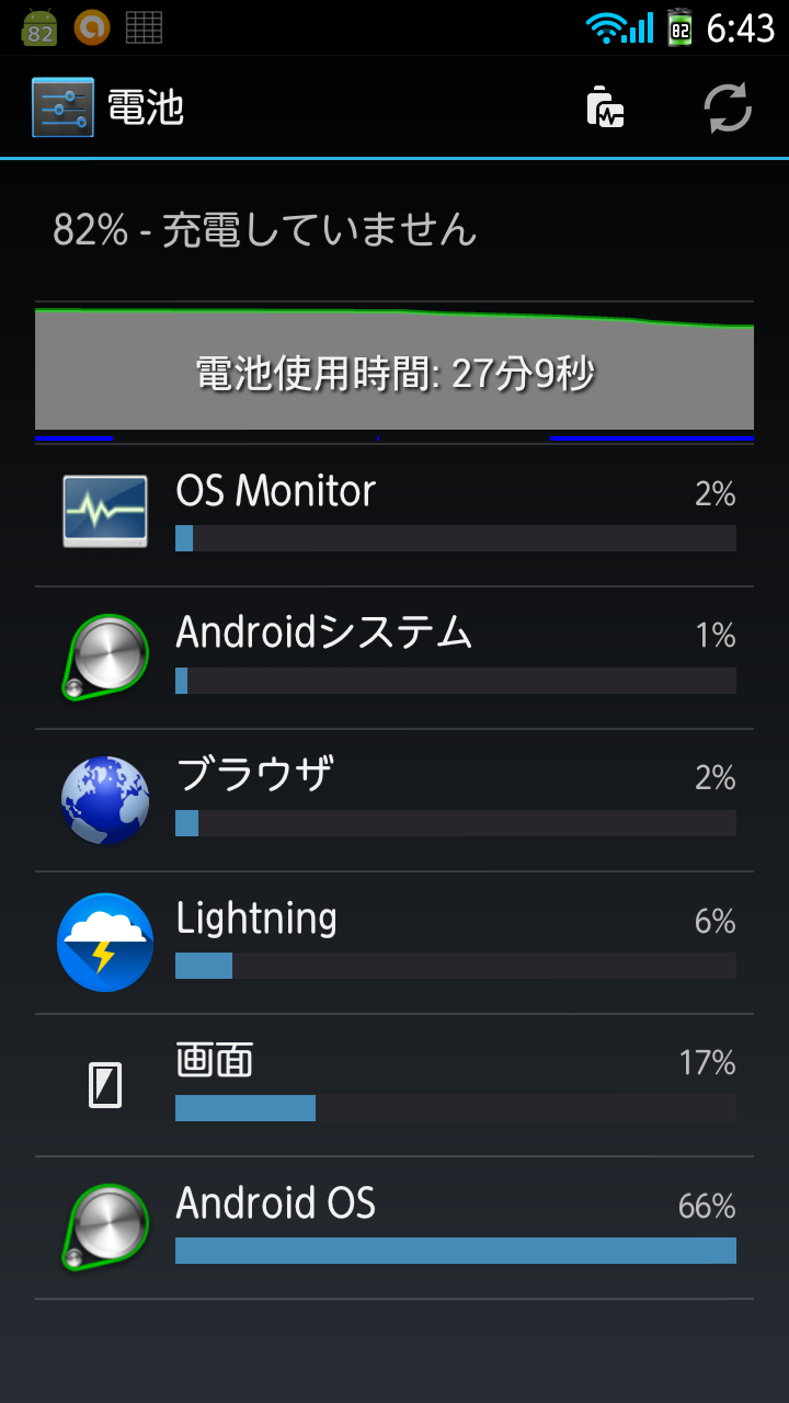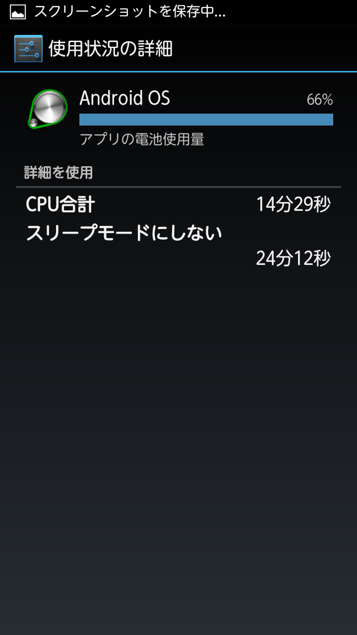 「設定」の「電池」を見ると「AndroidOS」という項目が画面などを抑えてダントツの66%