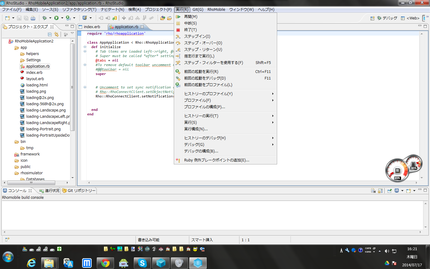 rubyでandroidアプリが開発可能なrhostudio をDLしてみた。